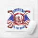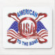 Diseño de cráneo patriótico y cruces con EE.UU. impreso en el medio y flanqueado por la bandera y el texto norteamericano que dice 'AMERICANO AL HUESO".