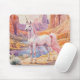Un bello unicornio parado al lado de un río en un cañón. Una colorida almohadilla para el ratón.