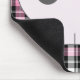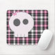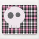 Cráneo lindo con la mariposa rosada en fondo rosado y negro de la tela escocesa.