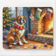 Alfombrilla De Ratón Boxer Sitting by Fireplace with Christmas Lights