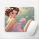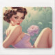 Alfombrilla De Ratón Brunette Pin Up Pastel Flowers