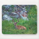 Fotografía de un ciervo macho tendido en hierba y flores silvestres que crecen entre una pared natural de piedra en un bosque. Esta fotografía de primer plano de un ciervo macho es la misma en mi fotografía titulada "Un dólar descansa en un río en cascada". Imagen Copyright© 2018 Kimberly J Tilley.