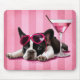 Perrito magnífico del bulldog francés y cóctel rosado, pintados por el artista Maryline Cazenave.