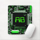 Diseño moderno con un acercamiento de una placa de circuito de ordenador en verde, negro y blanco, y sus iniciales escritas en verde. Mousepad con un diseño de personalizable para que puedas personalizar con tu propio texto, fotos e ideas. Creado usando una fotografía original y técnicas digitales de Jess Perry.