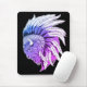 Cabeza de búfalo, animal con dirección alta india. Almohadilla para el ratón para los amantes del bisonte americano. Versión púrpura y azul.