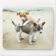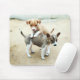 Una bonita fotografía de un par de pequeños cachorros jugando juntos en la playa.