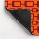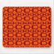 Esta almohadilla de ratón tiene un diseño moderno de mediados de siglo de rectángulos marrones redondeados unidos en un campo de naranja.