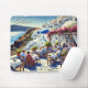 Perfecto regalo para los amantes del viaje y del café. El cuadro acuático representa el encanto tranquilo e idílico de una cafetería al aire libre de Santorini. El espacio está decorado con paredes encaladas con acentos azules y aberturas abovedadas que ofrecen unas vistas impresionantes al brillante mar Egeo. Mesas de madera con sillas de mimbre dispersas por todas partes, cada una de ellas adornada con jarrones de flores de buganvillas vibrantes. Un mostrador de piedra natural ofrece una cafetera tradicional griega, bollería y una cafetera espresso de época. En la parte superior, una pérgola de madera recubierta de viñas exuberantes ofrece una sombra parcial, lo que crea una luz solar dilatada en el suelo de baldosas de piedra. Los clientes se sientan con tranquilidad, tomando café y mirando al mar o conversando en silencio. Los icónicos colores blanco y azul de Santorini armonizan maravillosamente con la belleza natural del paisaje de los alrededores.