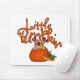Un pequeño muñeco de ragdoll con hilados rojos peinan las mejillas dentro de una gran calabaza naranja y un texto de color calabaza que dice "Pequeña calabaza" aparece en camisetas de Halloween, ratones, bolsos de truco o de tratamiento, tazas y más.