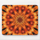 Un cojín de ratón con un fractal anaranjado atractivo de la llama basó diseño caleidoscópico