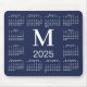 Alfombrilla De Ratón Calendario del Monograma 2025 Azul y Blanco de la