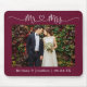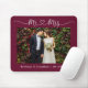 Modern Minimalista Simple caligrafía Script Mr. and Mrs. Heart Boda Bride and Groom Photo Mouse Pad - Borgoña