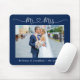 Moderno guión Minimalista simple caligrafía Mr. y Mrs. Heart Boda Bride y Groom Photo Mouse Pad - Azul marino