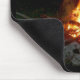 Fotografía de una fogata de palos rodeados de grandes rocas contra el cielo nocturno.