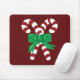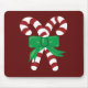 Este ilustracion cuenta con dos Navidades a rayas rojas y blancas que se unen con una brillante y brillante reverencia verde.