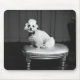 Alfombrilla De Ratón Caniche blanco que se sienta en el taburete B&W