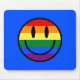 Esta colorida obra de arte muestra una cara de carita de caricatura arcoiris.