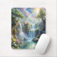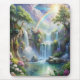 Una hermosa cascada en el bosque de vidrio con un arco iris