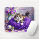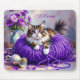 Alfombrilla De Ratón Cat in Purple Yarn and Flowers Personalized