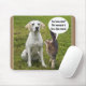 ¿Imagen de un gato que mira para arriba a un perro, con la burbuja del discurso "usted sabe lo que? Este mousepad está para un ratón falso!". Usted puede substituir el texto por sus el propio, si cabe en la burbuja; -)
