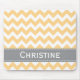 Este mousepad amarillo y gris de la sol moderna linda y elegante del galón de la raya con una alternancia del modelo de zigzag amarillo y blanco se puede personalizar con su nombre en el diseño de la mirada de la cinta de la puntada del contraste IMPRESO. Diseñado por Chrissy H. Studios, LLC. Todos los derechos reservados.