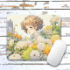 Alfombrilla De Ratón Chica de anime en flores amarillas