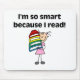 Un chica con una figura de palos cargando una gran pila de libros y texto que dice "¡Soy tan inteligente porque leo!" se incluye en camisetas, mousepads, bolsos de té, botones y otros artículos que promueven la lectura en los niños.