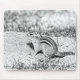 Un sketch en blanco y negro con una fotografía de primer plano de un chipmunk en el suelo. Este es uno de los chipmunks que vive en un camping en Ticonderoga, NY. Esta imagen fue tomada por Debbie Quick de Debs Creative Images. Para ver más fotografías de Debbie, visita su sitio web en: www.debscreativeimages.com