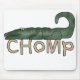 Un diseño del cocodrilo con el texto que lee "CHOMP" en las camisetas del cocodrilo, los imanes del cocodrilo, los pegatinas, las tarjetas, las tazas, y más.