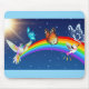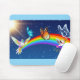 Alfombrilla De Ratón Cielo nocturno, dos pájaros, mariposas y arcoiris