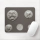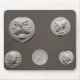 Cinco monedas romanas que representan Jano, Júpiter, Mercury y a Minerva, ANUNCIO 753 BC-476 situado en el Bibliotheque Nationale, París, Francia.
