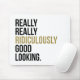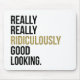 Hay más en la vida que ser muy, muy ridículamente bueno, pero todos podrían usar un pequeño recordatorio de su calor una y otra vez. En White mousepad aparece la cita en la tipografía de bloques negros con falsos acentos purpurinas de oro. NOTA: el Purpurina es una imagen impresa, no un purpurina real.