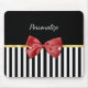 Alfombrilla De Ratón Clásico rojo dobla franjas en blanco y negro con n