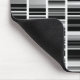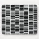 Un diseño digital abstracto compuesto por ocho columnas de barras de espesor variado en distintos tonos grises. Quizás evoca códigos de barras, estratos en roca o capas de páginas en un libro, o incluso cómo se podría imaginar que podrían verse pistas de datos en un disco. Lo que hace un diseño atractivo y moderno bastante adecuado para una almohadilla de ratón.