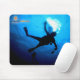 Este cojín de ratón ofrece una imagen de un buceador silueteado contra la superficie de las aguas del Caribe azules de Cozumel.