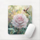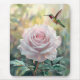 Alfombrilla De Ratón Colibrí acuarela y rosa rosa