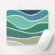 Abstract retro style illustration of colorful (blue, navy blue, grey, green, turquoise) ocean waves decoration on white background