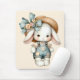 Alfombrilla De Ratón Conejito en overoles con Gorra de paja y cebo