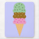 Características del este diseño un cono de helado triple de la cucharada (fresa, microprocesador de chocolate blanco del chocolate y microprocesador de chocolate de la menta) en un fondo purpúreo claro. El color de fondo puede ser cambiado haciendo clic en "personalizar él."