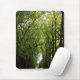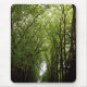 Estilo vertical Mousepad. Una fila de los árboles del sicómoro, con las hojas y los pedazos blando-verdes del cielo claro en una mañana de la primavera. Fotografía por la floración de Minerva.
