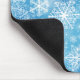 patrón vectorial sin fisuras con copos de nieve blancos ondulados sobre fondo azul