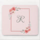 Una almohadilla de ratón floral rosa, coralina y color rosa blanco con un monograma de escritura en el centro. Personaliza con tu inicial.