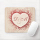 Una pieza central del corazón rosa pálido rodeada de un encaje vintage y bordeando el borde de los remolinos decora este adorable estilo de fondo de pantalla de San Valentín, con entrada de texto de personalizable para usted y las iniciales o el monograma de tu novia.