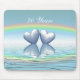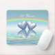 Mousepad con mi obra de arte de dos corazones de platino flotando en el agua bajo un arcoiris. El texto del personalizable dice "70 años".