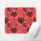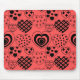 Esta almohadilla de ratón tiene un diseño de San Valentín de corazones repetidos con diferentes gráficos dentro de un campo de blanco.
