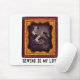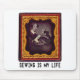 Fotografía real de una mujer victoriana trabajando duro en su máquina de coser 'de última generación', junto con el divertido logo de un personalizado: ¡El coser es mi vida!