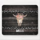 Almohadilla de ratón de madera plateada con diseño de cráneo de vaca floral rústico boho chic glamour