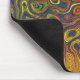 Un Mousepad fresco, con un patrón abstracto de giros locos en tonos oscuros, azules, verde oscuro y marrón con resaltes amarillos dorados.