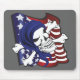 El cráneo patriótico y los huesos cruzados con bandana azul están sobre la bandera estadounidense.