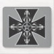 La cruz negra maltesa cuenta con un centro de pentagramas plateado rodeado de 4 espadas con llamas.